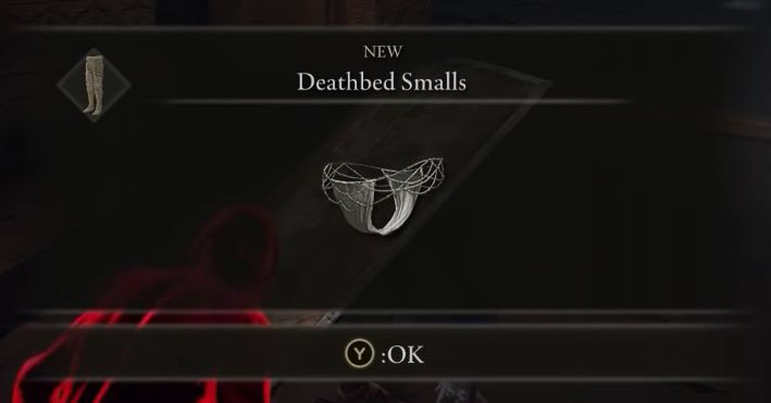 The underpants are Deathbed Smalls, the notoriously hacked drawers. You should not leave fancy undies lying on the ground if you see them. Players that have tempted fate and picked them up are reporting that they’ve been “soft-banned” from Elden Ring. There are numerouswarnings on theElden Ring sub-Reddit, as spotted by Vice.