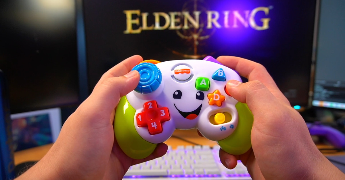 Elden Ring is hard enough as is. But it’s even more difficult when you play through with a toy controller meant for kids. Self described as a “builder of bizarre controllers,” streamer Rudeism shared that he had created a fully functional controller using a Fisher-Price Laugh & Learn Game & Learn Controller on April 30. Later, he shared video of himself using the controller for Elden Ring HTML1.